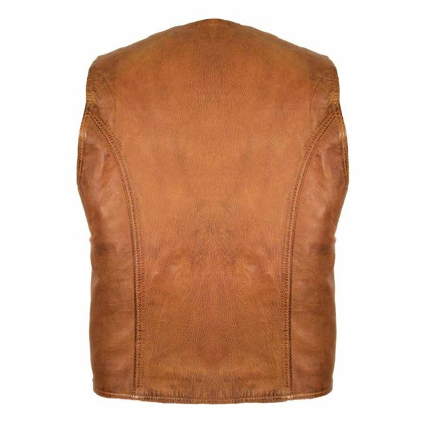 CLASSIC MEN'S LEATHER VEST IN BROWN MADE OF SOFT LAMB LEATHER