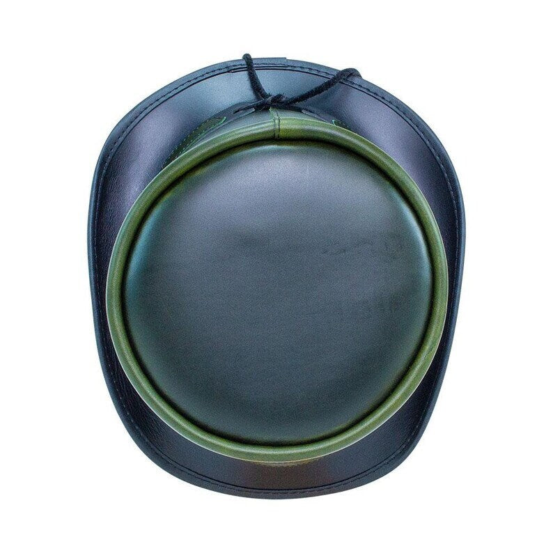 Introducing the Hampton Green Leather Steampunk Top Hat - the perfect accessory for the fashion-forward biker who wants to make a statement. Crafted from high-quality leather, this top hat is built to last and features a classic steampunk design with a modern twist.
