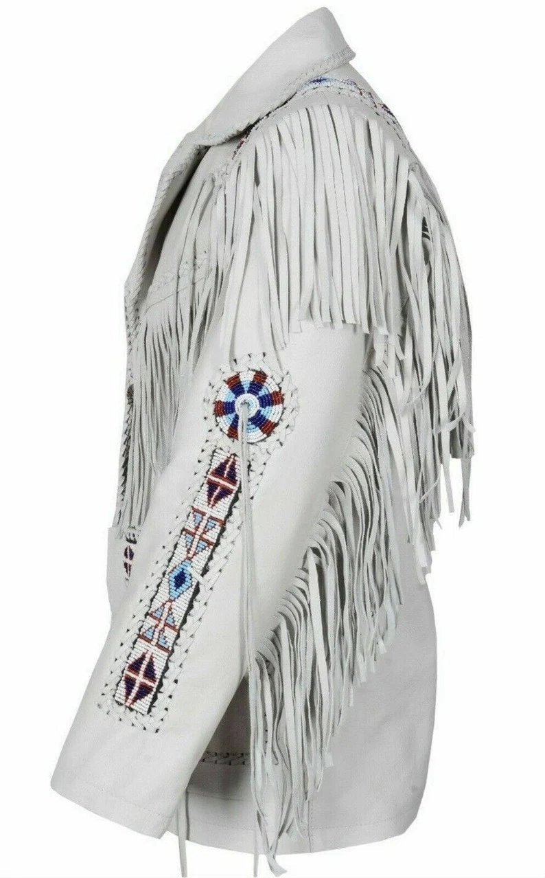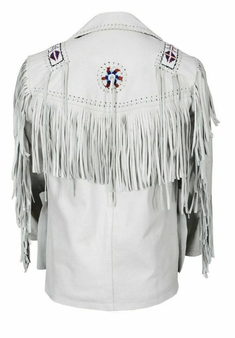 Leather jacket Men's Traditional Native White Classic Leather Western Jacket With Braided Fringes Country Side Red Indian Western is made of pure leather. This jacket will make you look what you want to be and will fit you the way you want it.