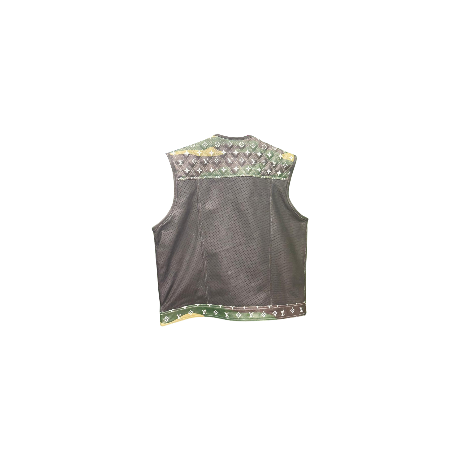 Upgrade your wardrobe with this sleek green and black designer leather vest. Featuring a stylish pattern and premium craftsmanship, this vest offers both elegance and durability. Ideal for casual wear or making a bold fashion statement, it combines functionality with a contemporary edge. Perfect for standing out in any crowd!