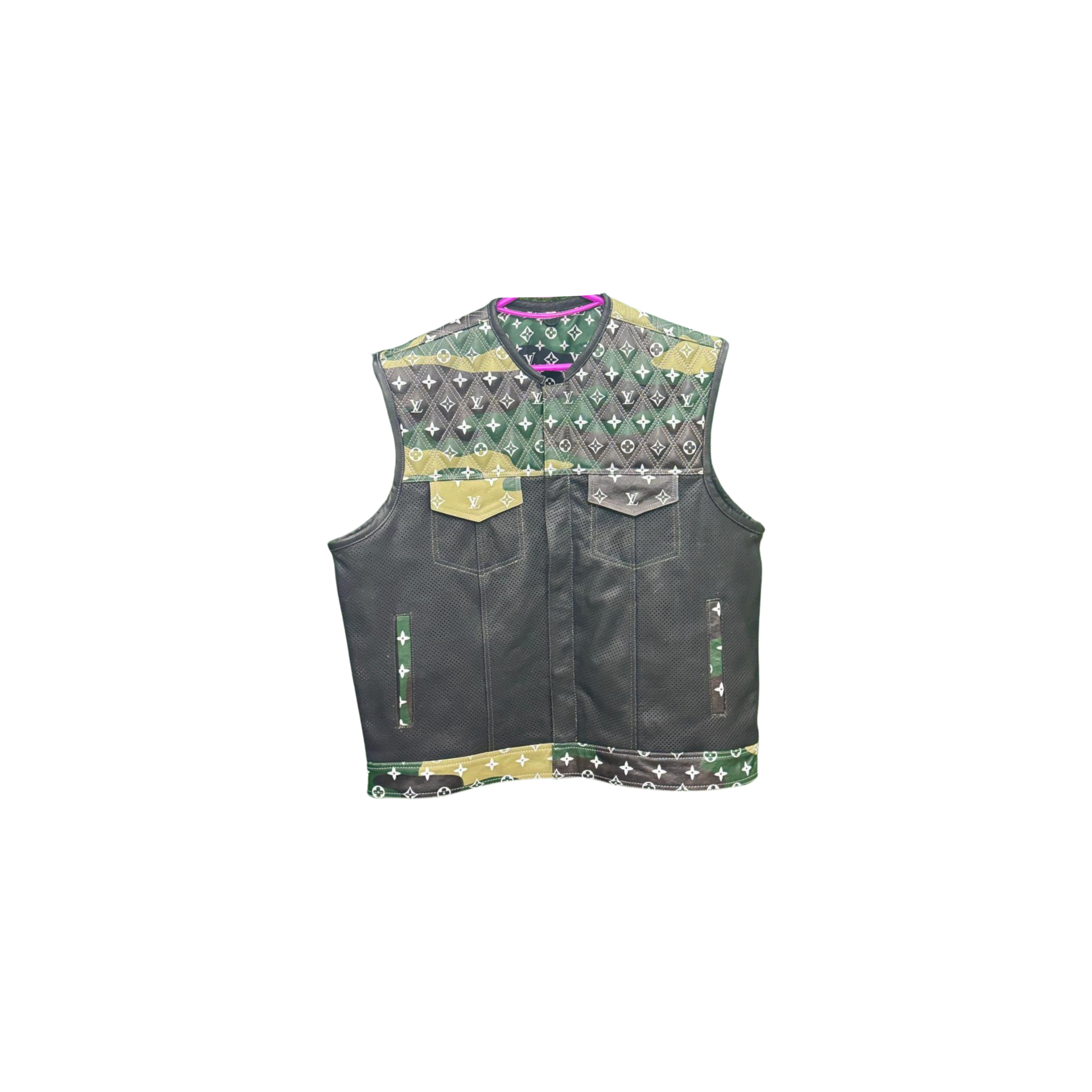 Camo-Leather Designer Leather Vest - Sleek & Versatile