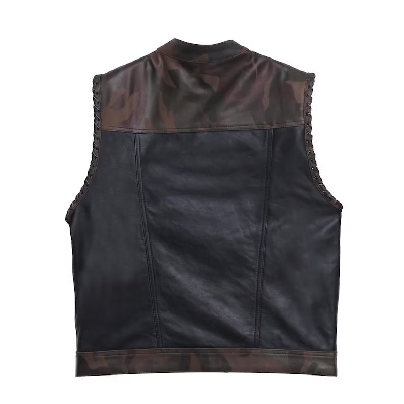 Leather vest Camo Style Denim Leather Motorcycle Vest Braided Braided Arms Men's Leather Vest Biker Rider Club