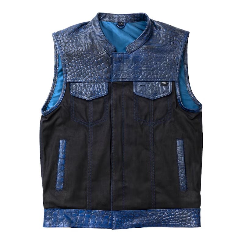 So if you're looking for a vest that combines style, quality, and edginess, look no further than the Crocodile Plated Leather Blue Wax Motorcycle Mens Vest. Upgrade your biker wardrobe today and make a statement wherever you go!