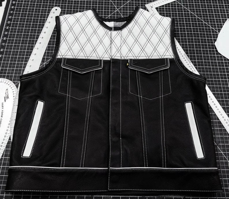 Leather Vest is a comprehensive review of a stylish and practical leather vest designed for men who love motorcycles and the biker lifestyle. The vest is diamond quilted and made of high-quality materials, such as grey leather and denim, that ensure durability and longevity. The article provides a detailed description of the vest's features, such as the various pockets, zippers, and other design elements that make it suitable for a variety of occasions. Additionally, the article emphasizes the versatility of the vest, highlighting the different ways it can be styled to suit different tastes and preferences. Whether as a gift for a loved one or as a personal investment, this leather vest is an excellent choice for anyone looking for a fashionable and functional addition to their wardrobe.Leather Vest Diamond Quilted White Leather Vest Black Denim Vest Leather Men Vest Biker vest Motorcycle Vest Men Motorcycle Gifts For Men is the finest product made to satisfy those who are searching for quality and want what they desire for. Men's Hunt Club Diamond Quilted Black Paisley Leather Build Denim Style Rider Motorcycle Vest is made to suit you. this product will make you look what you want to be and will fit you the way you want it. we'll make sure you shop again from us with trust