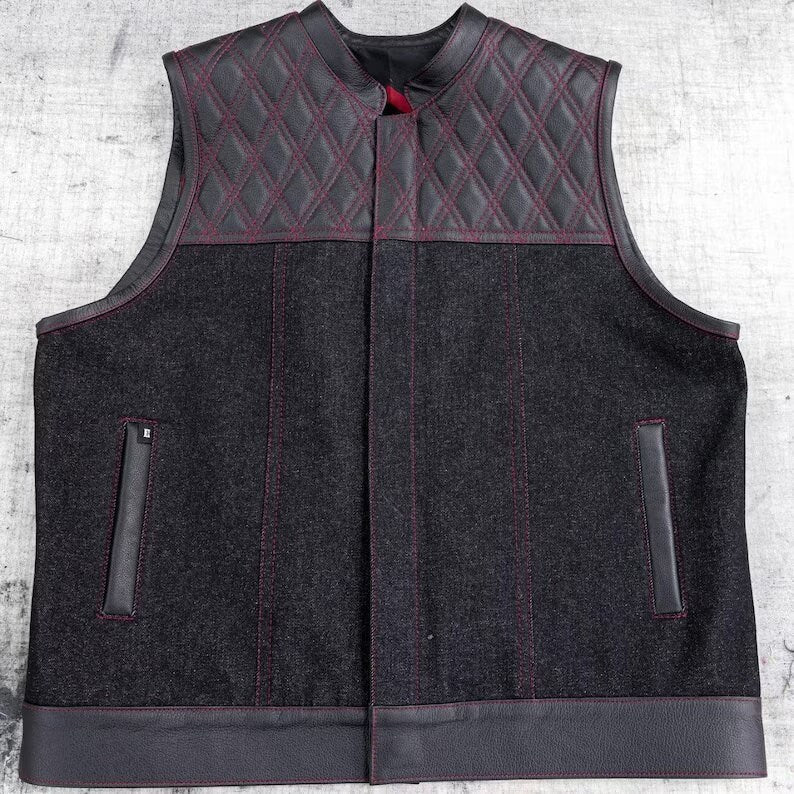 Crafted from high-quality leather and denim, this vest features an intricate diamond quilted pattern with black paisley leather detailing, adding a touch of luxury to the rugged design. The denim-style construction provides a classic biker look that never goes out of style.