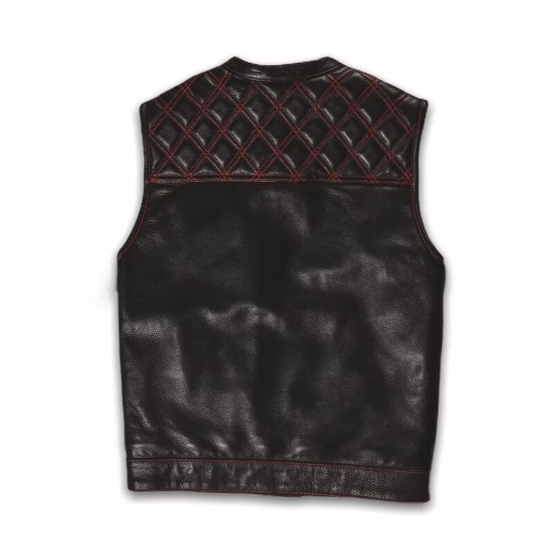 Introducing the Leather Vest Men's Hunt Club Diamond Quilted Red USA Flag—a striking and patriotic statement piece that captures the spirit of freedom and adventure. This motorcycle leather vest is designed for riders who want to showcase their love for their country while exuding style and individuality.