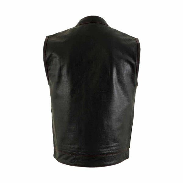 LEATHER VEST WITH RED STITCHING AND INSIDE FLAG LINING