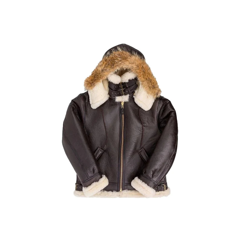 Men's Bomber B3 RAF Aviator Flying Leather jacket, Men's Bomber B3 jacket, Handmade Brown Hooded Leather Vintage Jacket.