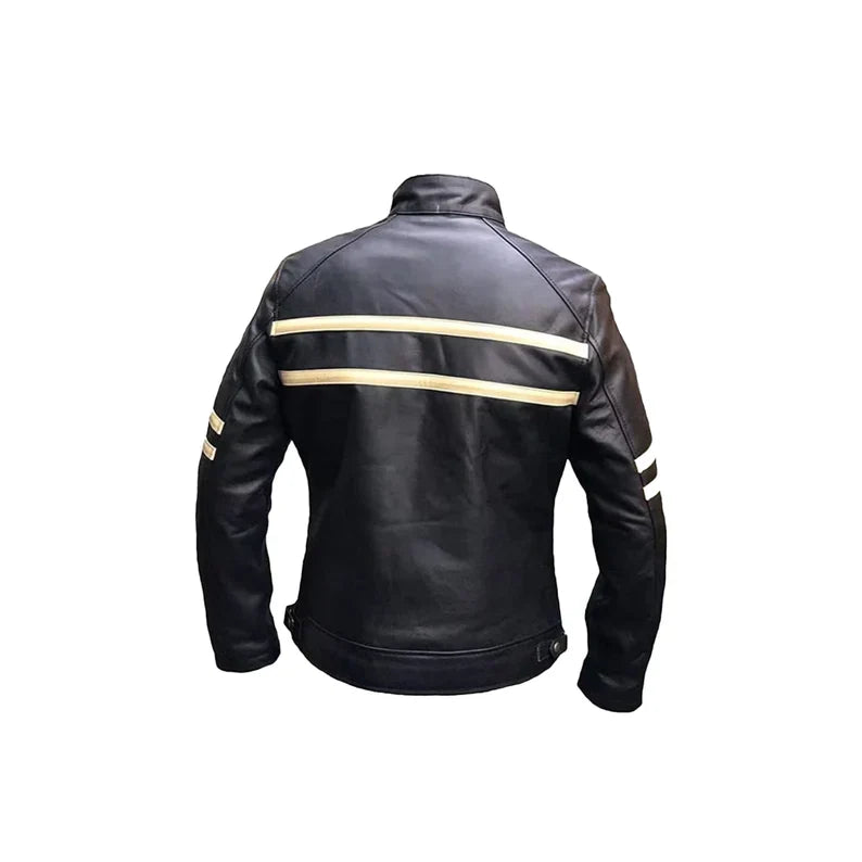 Men's Cruise Cafe Racer Stripe Biker Leather Jacket, Handmade Black and white Stripe Leather jacket,Winter Leather Jacket.