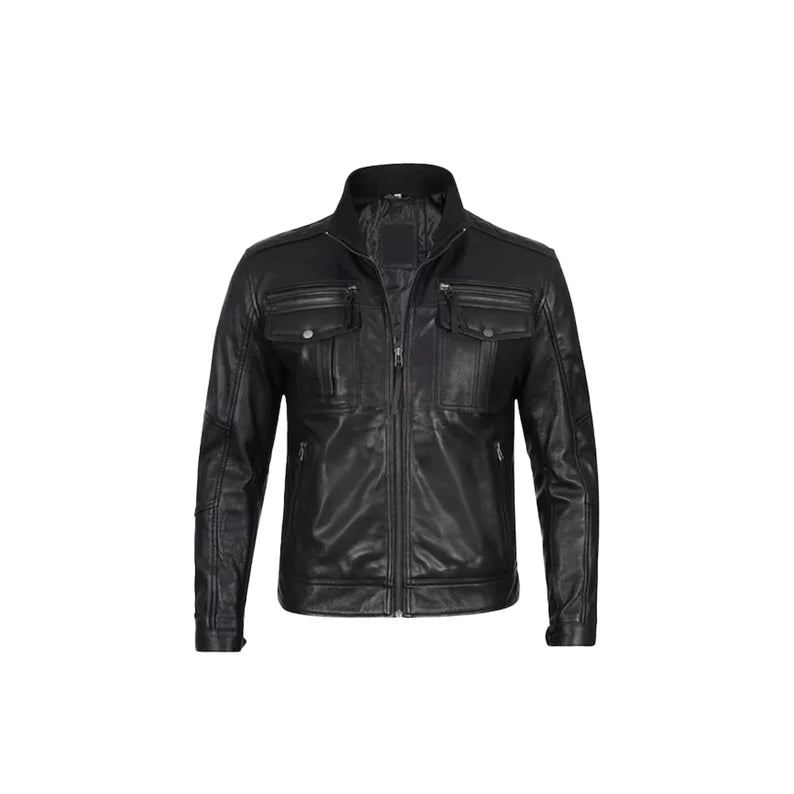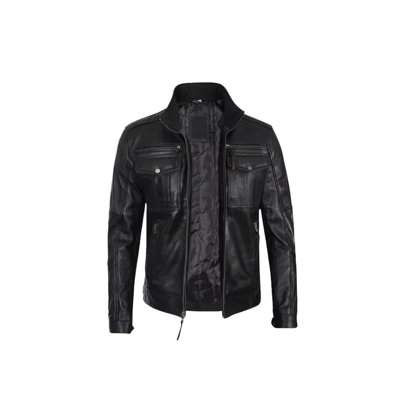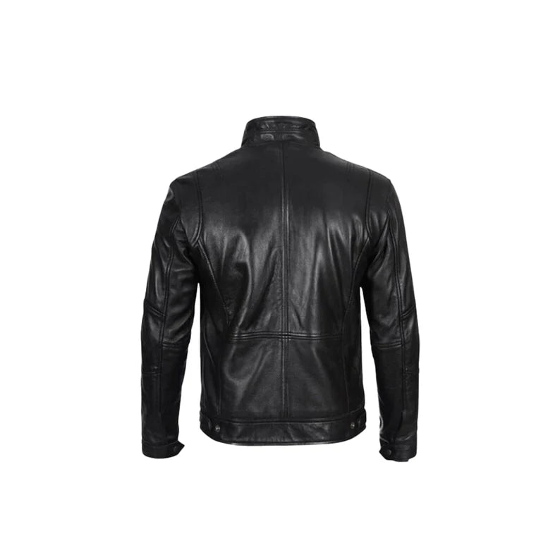 Men's Stylish Café Racer Biker Leather Jacket, Handmade Black Sheep Genuine Leather Motorcycle Jacket, Mens Leather Jacket.