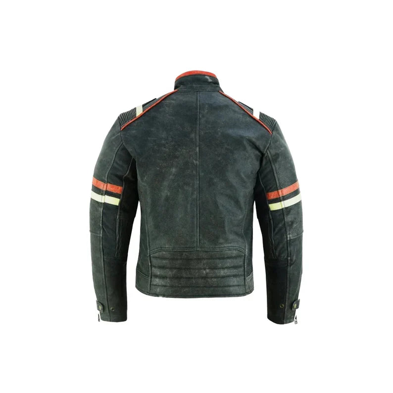 Men's Vintage Cafe Racer Biker Retro Moto Distressed Leather Jacket,Handmade Black Distressed Genuine Cowhide Leather Jacket.