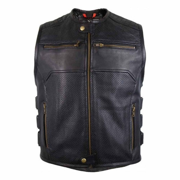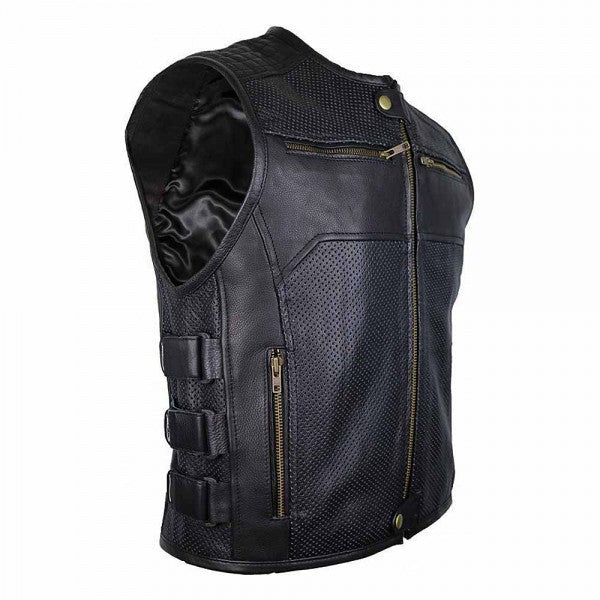 MOTORCYCLE LEATHER VEST WITH ZIPPER AND ADJUSTABLE VELCRO STRAPS
