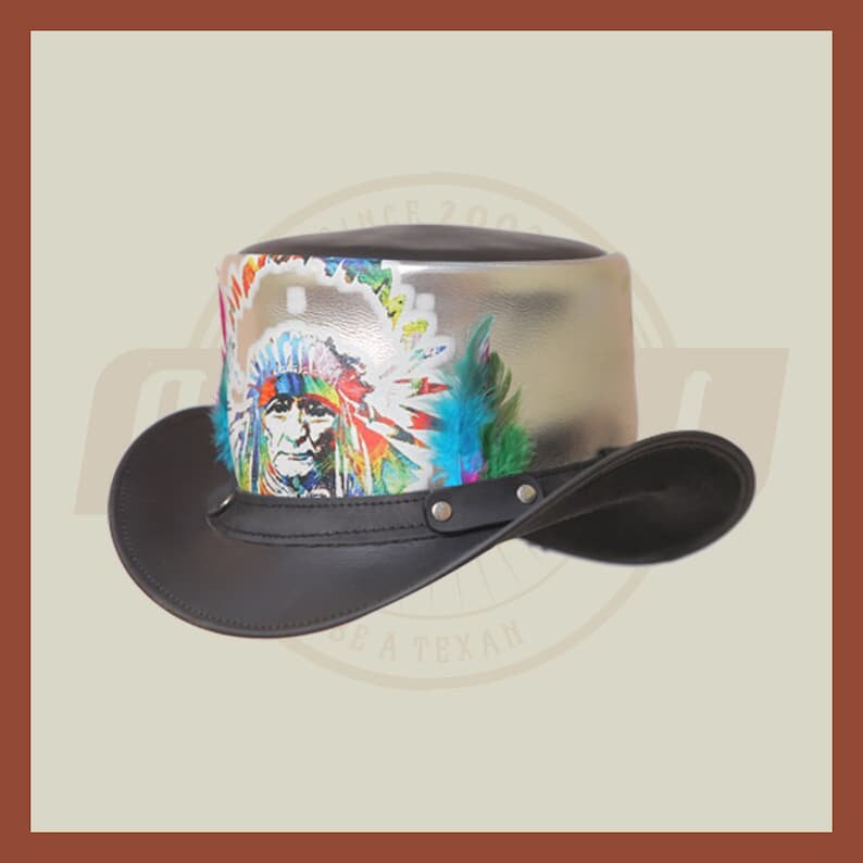 Elevate your style with the Red Indian Western Native American Black Silver Multicolor Leather Top Hat. Let it be a visual representation of your appreciation for diverse cultures and a testament to your unique fashion sense. Stand out from the crowd, celebrate heritage, and make a statement that transcends borders and boundaries.