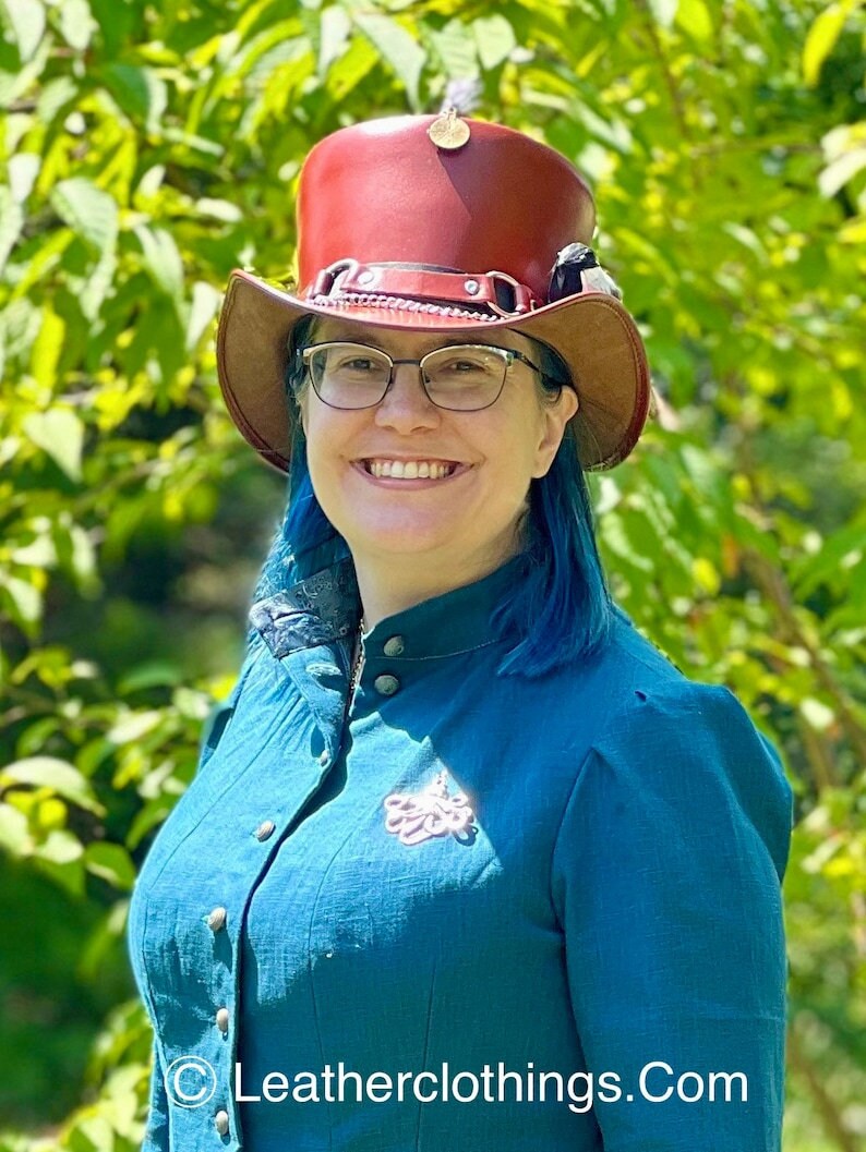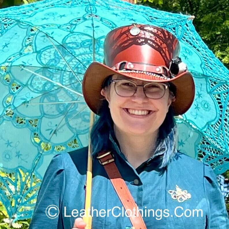 Steampunk Hat El Dorado Top Hat SR2 Band Brown Leather Hat Motorcyclists Hat Biker Hat Gift For Her Gift For Him