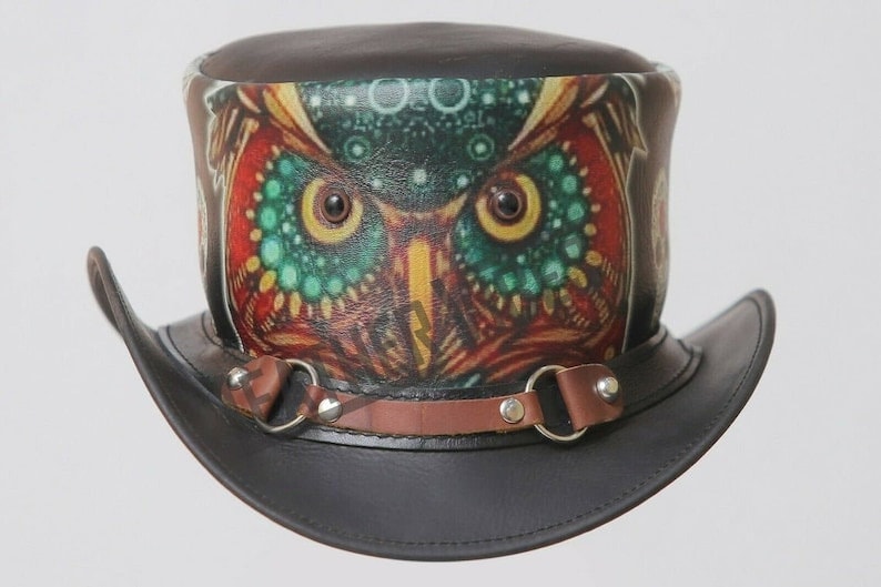 Embark on a journey of wisdom and style with the Steampunk Owl Crazy Skull Ring Band Leather Top Hat. This unique and captivating accessory combines the enigmatic charm of owls with the rebellious spirit of skull motifs, creating a truly mesmerizing steampunk-inspired look.