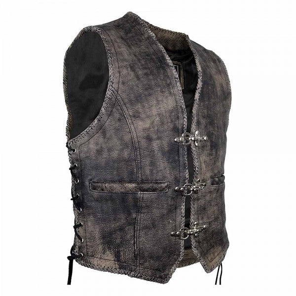 VINTAGE GRAY MEN'S LEATHER VEST BIKER KUTTE
