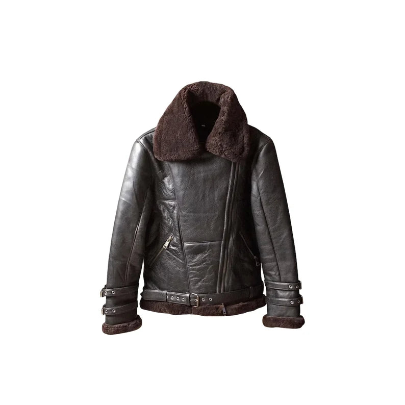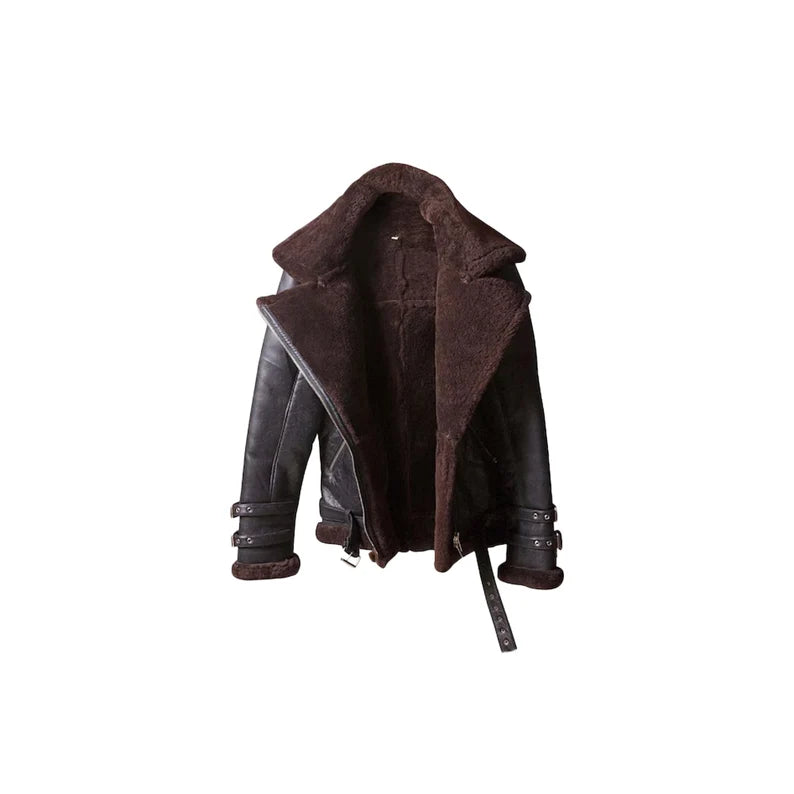 Women's B3 Bomber Faux Far Shearing Aviator Leather Jacket, Handmade Brown Bomber Fur Shearling Leather Jacket.