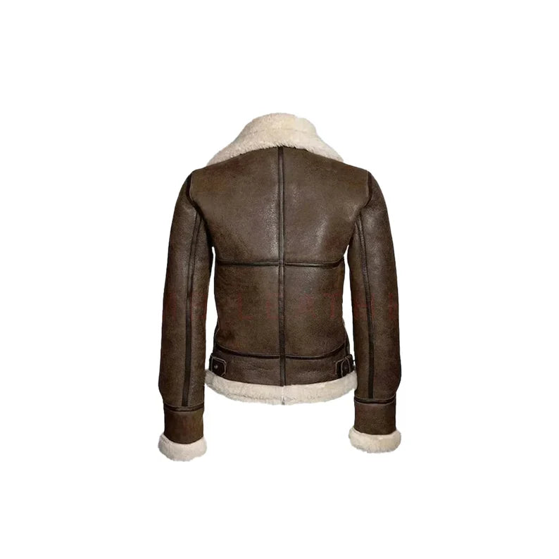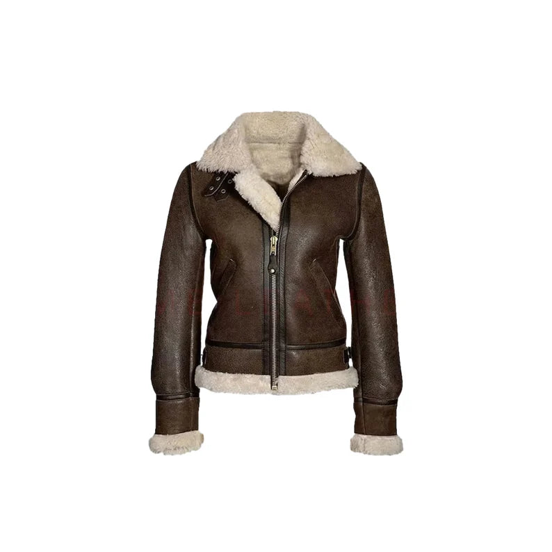 Women's RAF Aviator B3 Bomber Leather Jacket,Women Brown Real Leather Sheepskin Faux Fur Jacket,Handmade Faux Fur Shearling Coat.