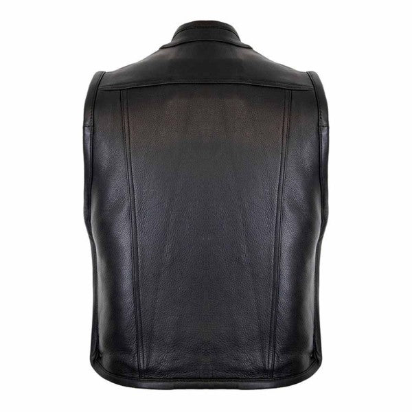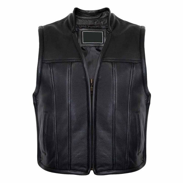 ZIPPER LEATHER VEST BIKER IN BLACK